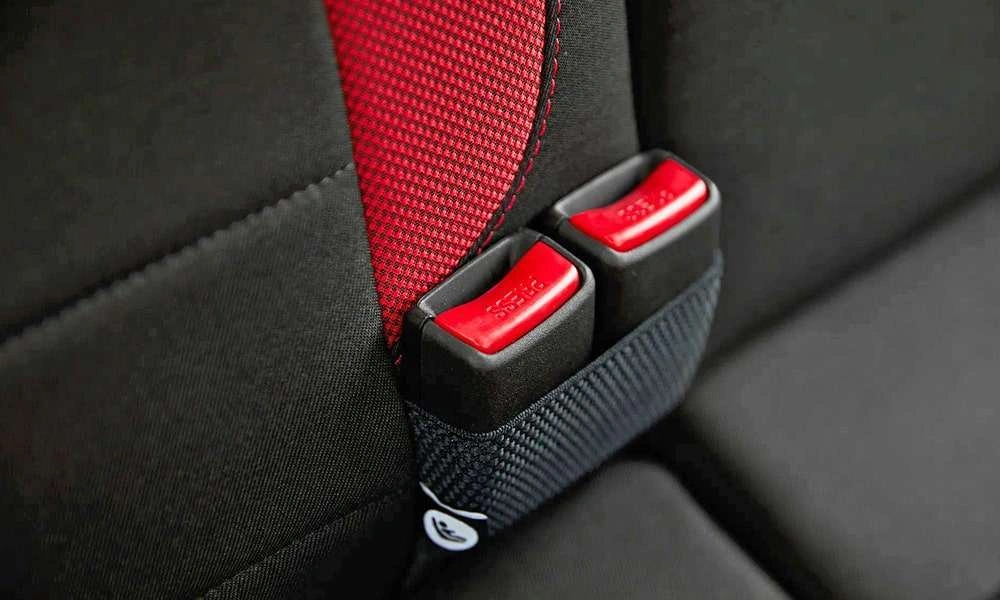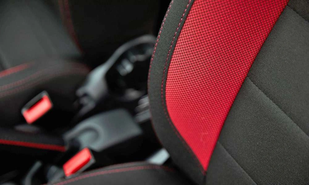Обивка сидений ткань. Цвет черный с красными элементами